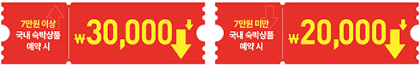 - 7만원 이상 국내 숙박상품 예약 시 → 3만원 할인
