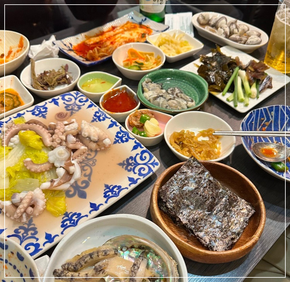 - 이모카세 1호: 보리밥, 생선구이, 낙지, 나물, 수육 #즐거운술상