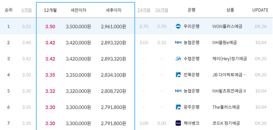금리가 가장 높은 정기예금 상품을 선택하는 것이 중요합니다. 현재 금융감독원 금융상품통합비교공시 사이트에서 다양한 정기예금 상품을 비교할 수 있습니다