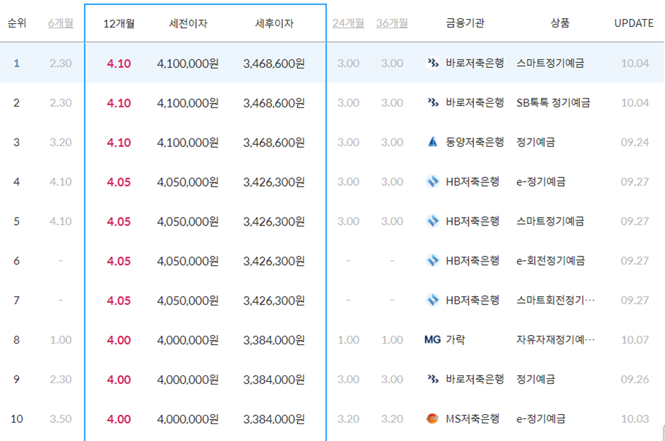- 최고 금리 4.1%: 바로저축은행 정기예금
