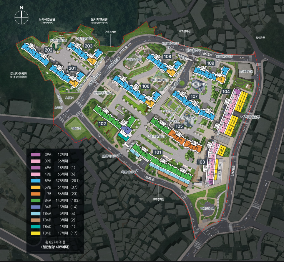 아파트 지하 3층, 지상 15층, 12개동 총 827세대 중 일반분양 409세대, 정당계약 및 예비입주자 계약 이후 잔여물량 25세대