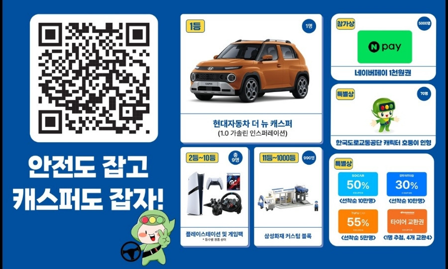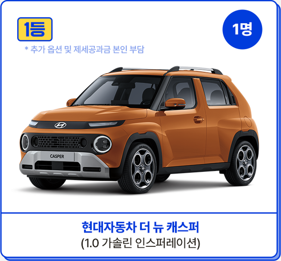- 1등 상금: 현대 최신 모델 캐스퍼 (약 1,980만 원 상당)