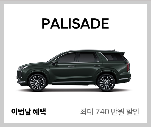 - 팰리세이드 (신형 모델 전 생산차량): 740만원 할인