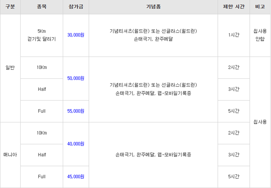 ▶ 최근 1년간 하프 2시간 이내 완주 기록증 또는 풀 5시간 이내 완주 기록증이 없으면 풀코스 참가 불가