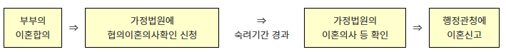 - 이혼숙려기간이 지난 후 부부는 가정법원에 출석해 이혼의사 및 미성년 자녀 양육에 관한 사항을 확인받습니다.