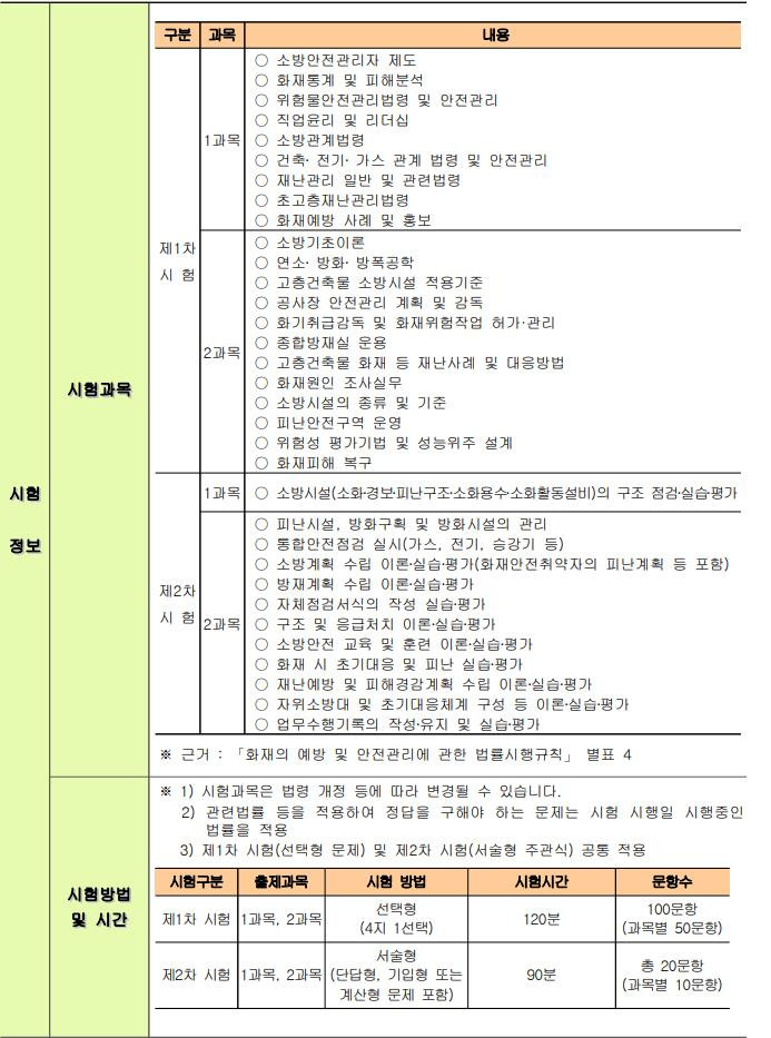 2025년 소방안전관리자 자격시험 일정은 아직 확정되지 않았지만, 매년 정기적으로 시행됩니다. 시험 과목은 소방관계법령, 소방학개론, 화기취급감독, 소방시설의 구조 및 점검 등으로 구성되어 있습니다. 각 과목은 이론과 실습으로 나뉘며, 실무 능력을 평가하는 데 중점을 둡니다.