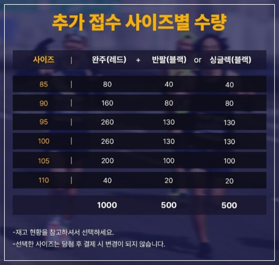 - 접수 방법: 사이즈별 접수 후 추첨