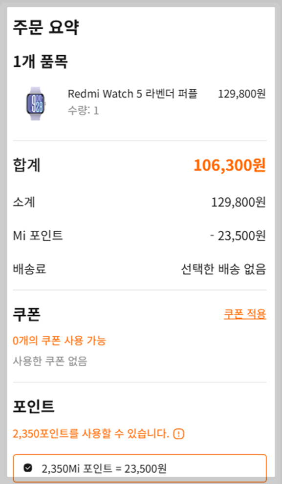 - 가장 저렴하게 구입하려면 샤오미 공홈에서 구매하세요. 샤오미 공홈에서 미포인트 23,500원을 적용하여 106,300원에 구입할 수 있습니다.