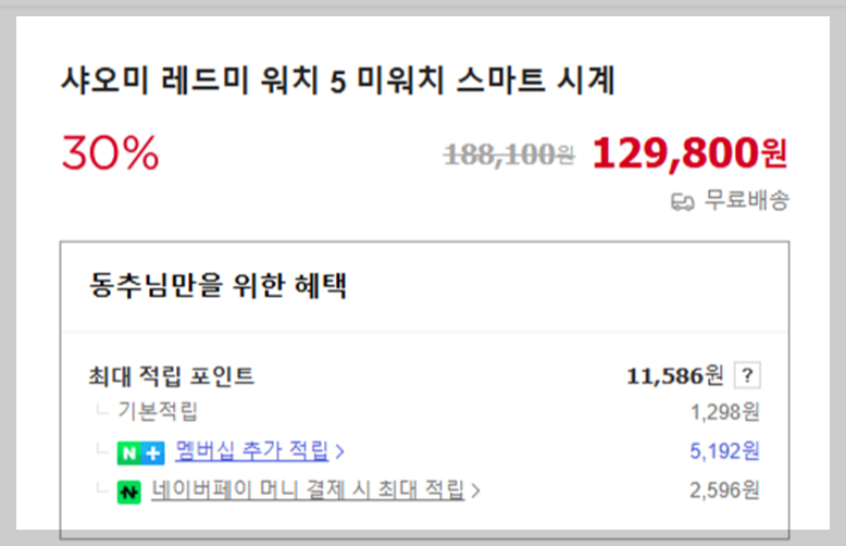 - 현재 네이버 판매가: 129,800원(배송비 무료)