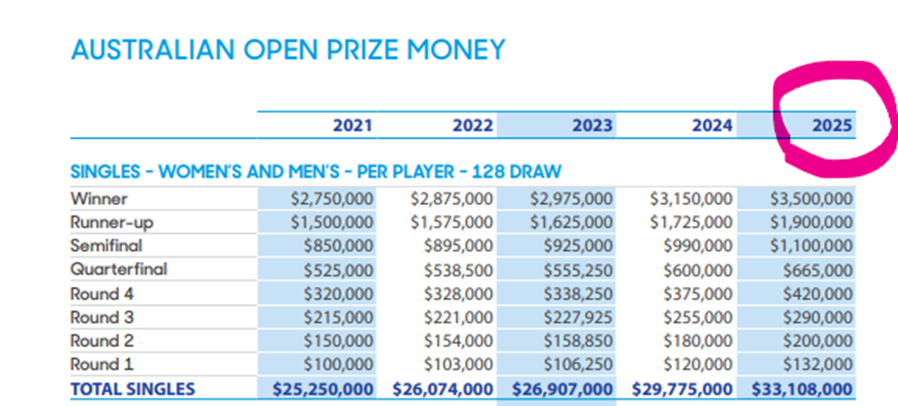 2025 호주 오픈 상금 수준