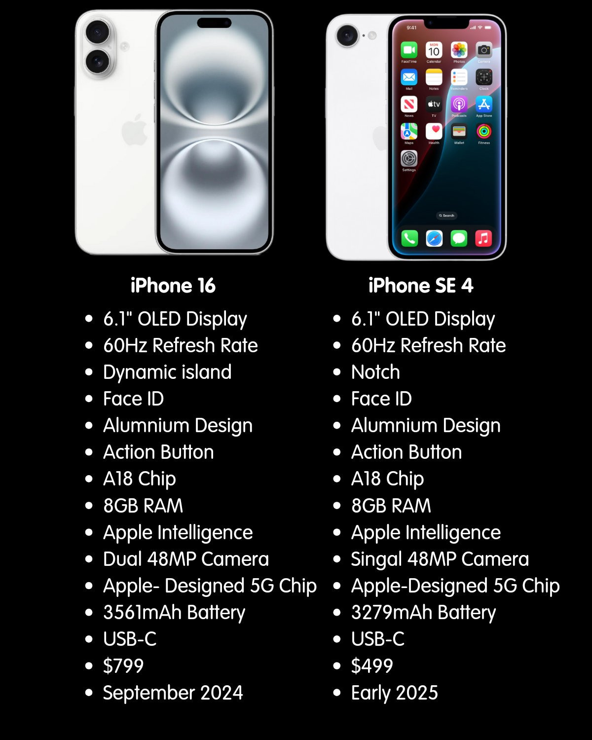 기존의 아이폰 SE3와 비교했을 때, SE4는 디자인과 성능에서 상당한 업그레이드를 보여줍니다. 특히 A18 칩과 6GB 또는 8GB RAM 옵션을 통해 더 나은 멀티태스킹과 게임 성능을 지원합니다. 또한, SE4는 USB-C 포트를 채택하여 최신 기기와의 호환성을 높였습니다. 기존 모델은 여전히 라이트닝 포트를 사용하고 있었기 때문에, 이 부분에서도 큰 변화가 있습니다.